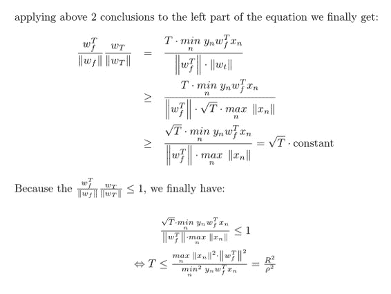 ,也就是说,迭代次数T是有上界的。根据以上证明,我们最终得到的结论是: