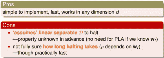 实际上并不存在,那么之前的推导并不成立,PLA不一定会停下来。所以,PLA虽然实现简单,但也有缺点: