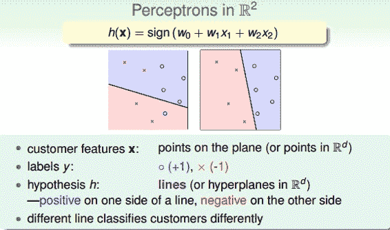 在这个机器学习的整个流程中,有一个部分非常重要:就是模型选择,即Hypothesis Set。选择什么样的模型,很大程度上会影响机器学习的效果和表现。下面介绍一个简单常用的Hypothesis Set:感知机(Perceptron)。