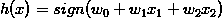 是平面上一条分类直线,直线一侧是正类(+1),直线另一侧是负类(-1)。权重w不同,对应于平面上不同的直线。