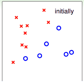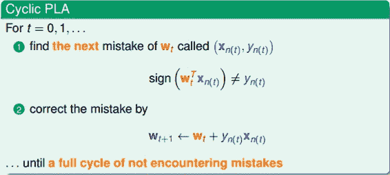 实际操作中,可以一个点一个点地遍历,发现分类错误的点就进行修正,直到所有点全部分类正确。这种被称为Cyclic PLA。