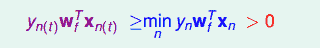与x夹角大于90度,能保证x位于直线的下侧,则对误分为正类的错误点也完成了直线修正。