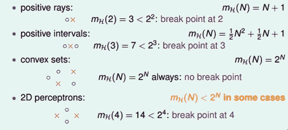 我们先回顾一下上节课的内容,四种成长函数与break point的关系: