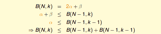 根据递推公式,推导出B(N,K)满足下列不等式: