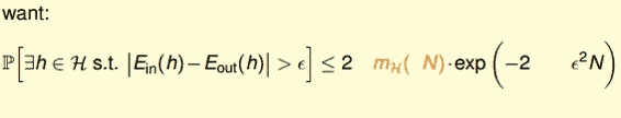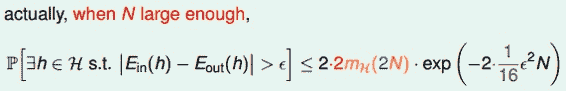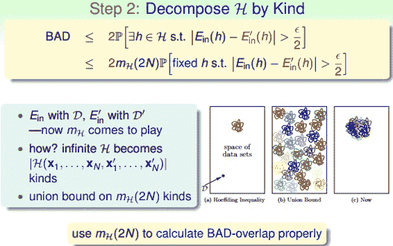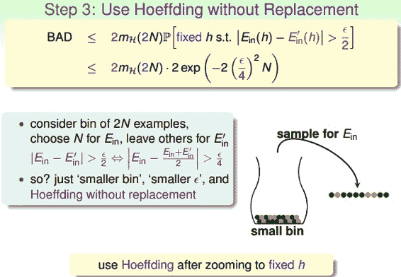代入了Hoffding不等式中,推导出了Vapnik-Chervonenkis(VC) bound,最终证明了只要break point存在,那么机器学习就是可行的。