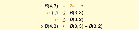 以B(4,3)为例,首先想着能否构建B(4,3)与B(3,x)之间的关系。