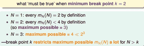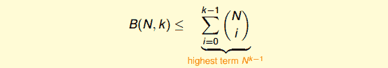 。当N = k时,此时N是第一次出现不能被shatter的值,所以最多只能有
